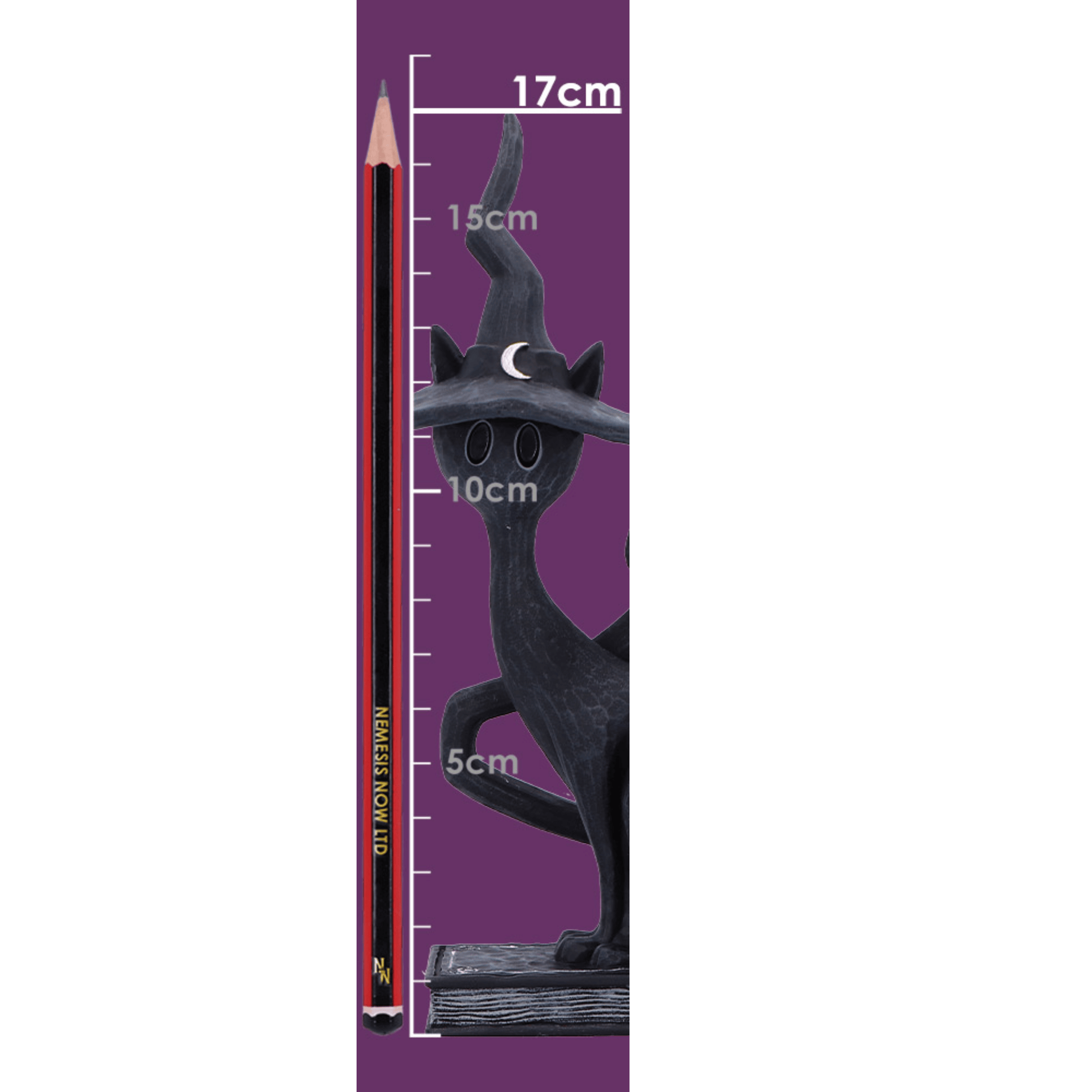 Add a touch of playful magick to your space with the Enchant Spell Cats figurine. Standing at 17cm, this whimsical black cat wears a crooked witch’s hat and perches atop a spell book, its body adorned with silver stars and a crescent moon. Crafted from high-quality resin and hand-painted with careful detail, it’s the perfect familiar for shelves, altars or gothic displays. Ideal for cat lovers, witchy décor enthusiasts and collectors of all things mystical, this charming piece arrives in a stylish Nemesis Now gift box—ready to be gifted or treasured.