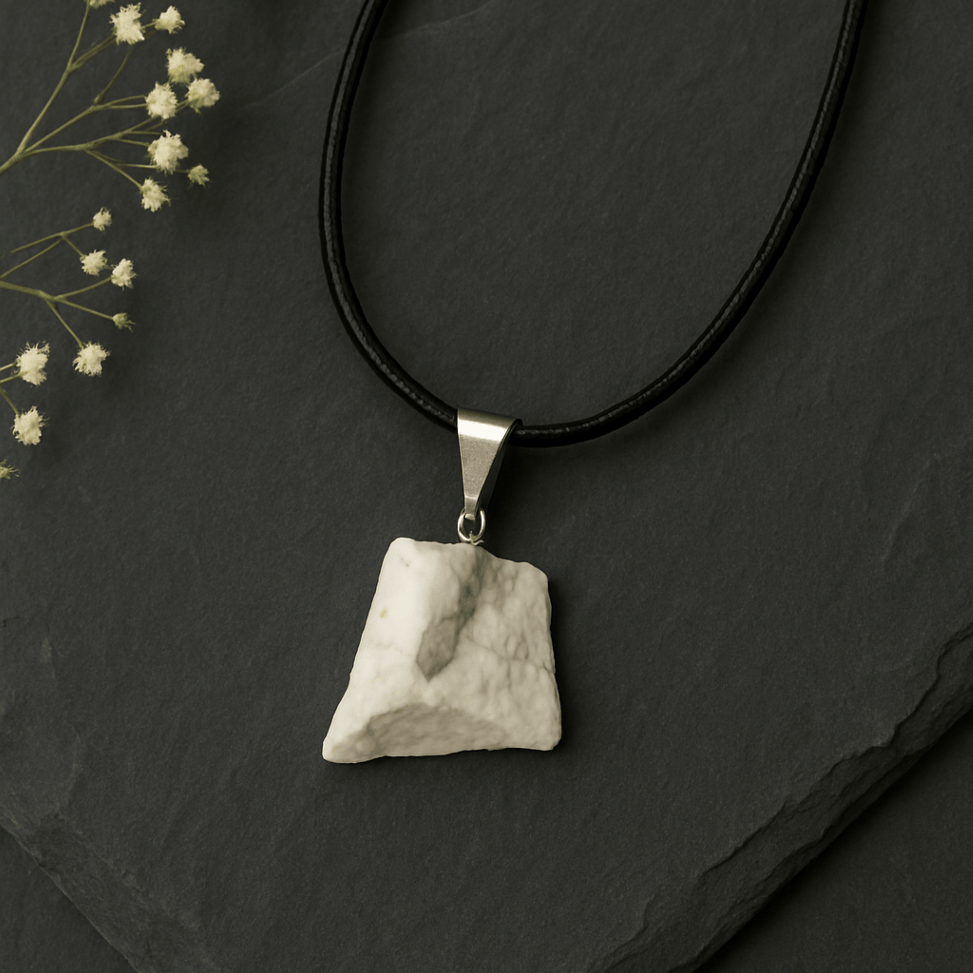 WHITE HOWLITE ROUGH PENDANT NECKLACE CORD – Calming & Balancing Crystal